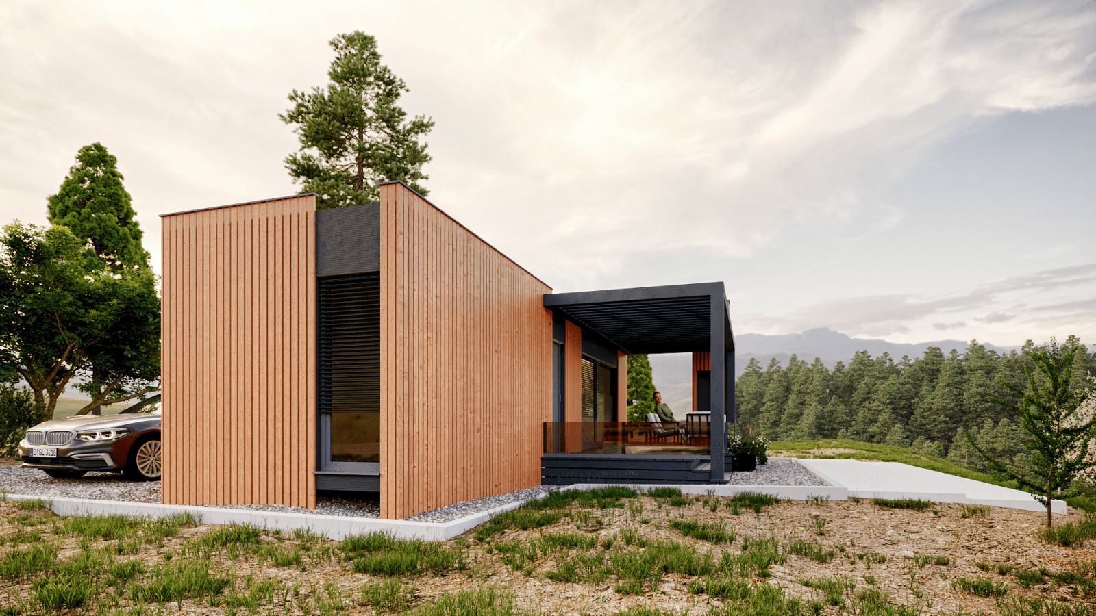 MMH21_M.01 ist ein Mobilheim, bestehend aus einem Wohnmodul mit überdachter Terrasse, vorgesehen für vier Personen. Neben Wohnzimmer, Esszimmer, Diele, Bad und Schlafzimmer gibt es eine große Terrasse, als Verlängerung des Wohnbereichs. Es ist für Geselligkeit und Zusammenkunft gedacht und kann mit einem zusätzlichen, serienmäßigen Grillmodul und einer bioklimatischen Pergola ausgestattet werden, damit der Aufenthalt in der Natur bei jedem Wetter angenehm war. WARUM WÜRDE EIN STÜCK NATUR NICHT FÜR SIE ENTWORFEN WERDEN ?