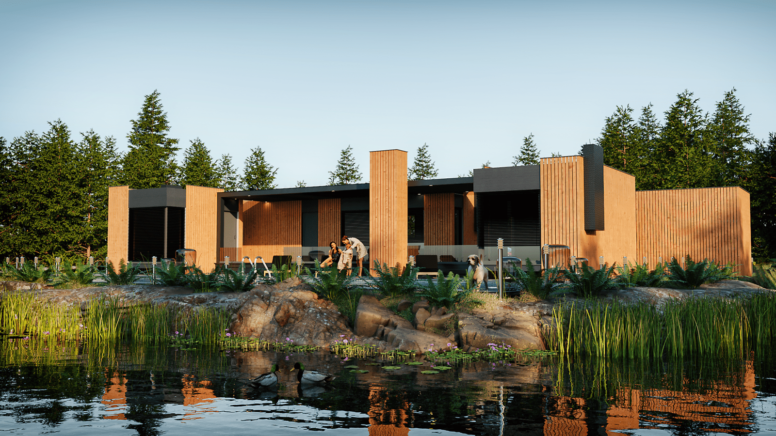 MMH21_XL.01 ist der luxuriöseste mobile MMH-Komplex, der für acht Personen bestimmt ist. Es besteht aus vier modularen Einheiten, die mit ihren konsequenten Materialisierungsprinzipien den Eindruck eines Ganzen erwecken. Eines dieser Module ist ein Garagenplatz, die anderen drei haben eine Wohnfunktion. Sie sind um eine große, überdachte, multifunktionale Terrasse organisiert, die als Ort der Entspannung und Geselligkeit konzipiert ist und optional mit einer bioklimatischen Pergola überdacht werden kann, um den Aufenthalt in der Natur auch an Regentagen angenehm zu gestalten. NEUE ZEITEN BEEINFLUSSEN DIE BILDUNG NEUER GEWOHNHEITEN UND DAS TREFFEN NEUER ENTSCHEIDUNGEN. LASSEN SIE IHRE WAHL MMH OBJEKTE SEIN!